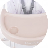 Scăunelul Teddy de la Chipolino îmbină siguranța, confortul și practicitatea. Datorită șezutului lat și a suportului pentru picioare reglabil, copilul se simte confortabil, în timp ce centurile în 5 puncte asigură stabilitate în timpul meselor. Tăvița detașabilă și spațioasă facilitează servirea și întreținerea.