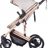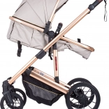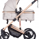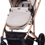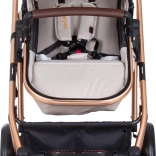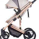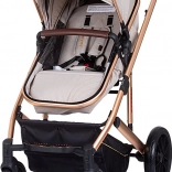 Copilul se bucură de confort maxim datorită spătarului reglabil în 3 poziții, insertului moale și centurilor în 5 puncte cu căptușeală. Copertina mare, cu plasă suplimentară, parasolar și fereastră, oferă protecție împotriva vremii. Părinții vor aprecia mânerul reglabil pe înălțime, îmbrăcat în piele ecologică, coșul încăpător, husa pentru picioare căptușită cu fermoar și geanta de mână.