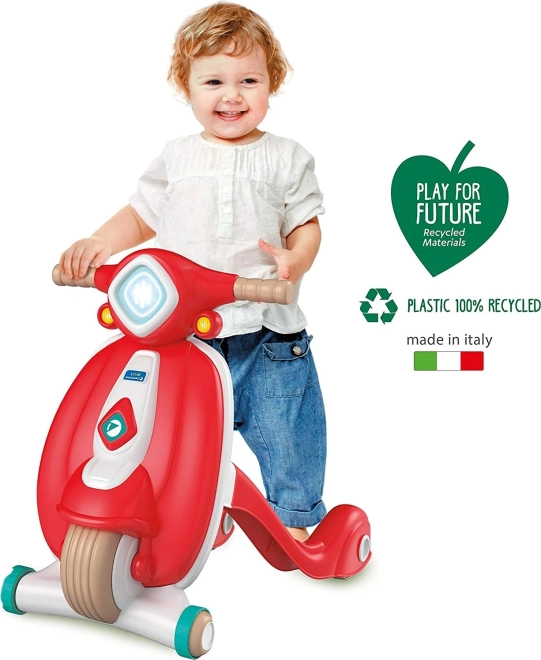 Premergător și vehicul de împins pentru copii, inspirat de iconica Vespa, ajută la primii pași și antrenează echilibrul. Are design ergonomic, construcție stabilă și un practic spațiu de depozitare pentru jucării mici. Fabricat din plastic 100% reciclat, prietenos cu natura, ideal pentru copii între 10 și 36 de luni.