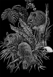 Acest bloc răzuibil oferă ore întregi de distracție pentru copii și adulți. Folosiți creionul inclus pentru a răzui liniile motivului pretipărit, iar sub stratul negru se vor dezvălui treptat fundaluri aurii, argintii, curcubeu sau holografice. Tema animalelor sălbatice din America de Nord îi va încânta pe micii exploratori și pe iubitorii naturii, iar datorită descrierilor în engleză vă veți exersa vocabularul într-un mod plăcut.