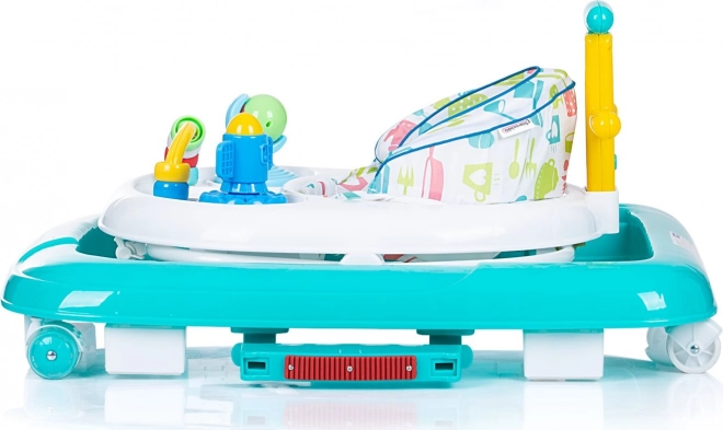 Premergător multifuncțional 4‑în‑1 pentru copii până la 12 kg, susține primele pasuri, echilibrul și coordonarea. Oferă premergător, balansoar, jucărie de împins și posibilitatea de a fi împins de un adult. Datorită bazei late și stabile, celor 3 poziții pe înălțime ale scaunului, roților pivotante 360° și tăbliței interactive este distractiv și sigur.