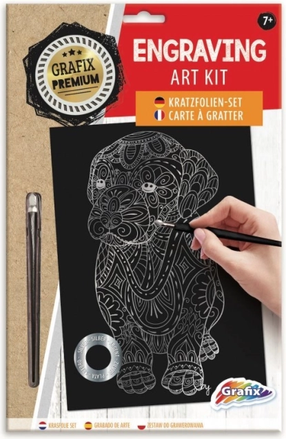 Acest set de răzuit cu motiv de câine oferă un rezultat spectaculos datorită fundalului cu strălucire argintie, care contrastează frumos cu stratul superior negru. Folosește stiloul de răzuit inclus și conturează o imagine detaliată după liniile pretipărite – sau pornește pe cont propriu într-un design original.