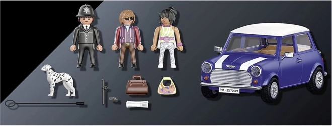 Setul include trei figurine, un simpatic dalmațian și o selecție de accesorii pentru scenarii și mai autentice. Elementele cromate și direcția pe partea dreaptă subliniază fidelitatea față de MINI-ul original. Piesele sunt igienice, ușor de spălat și rezistente, ceea ce garantează o durată lungă de viață și un joc sigur.