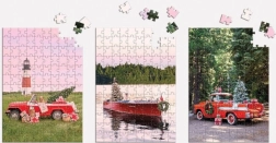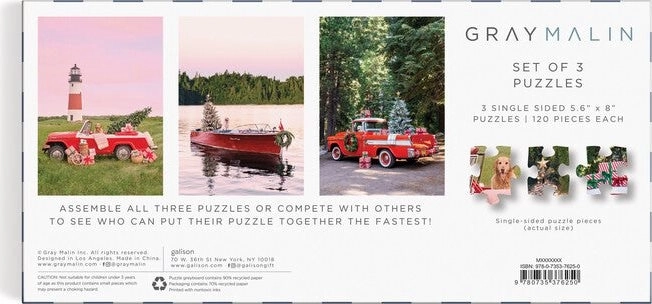 Gray Malin The Holiday 3-In-1 Puzzle Set include trei puzzle-uri de 120 de piese inspirate de bestseller-uri din fotografiile aeriene ale lui Gray Malin. Ideal pentru toți cei care doresc să se cufunde în lumea fotografiei artistice și a relaxării.