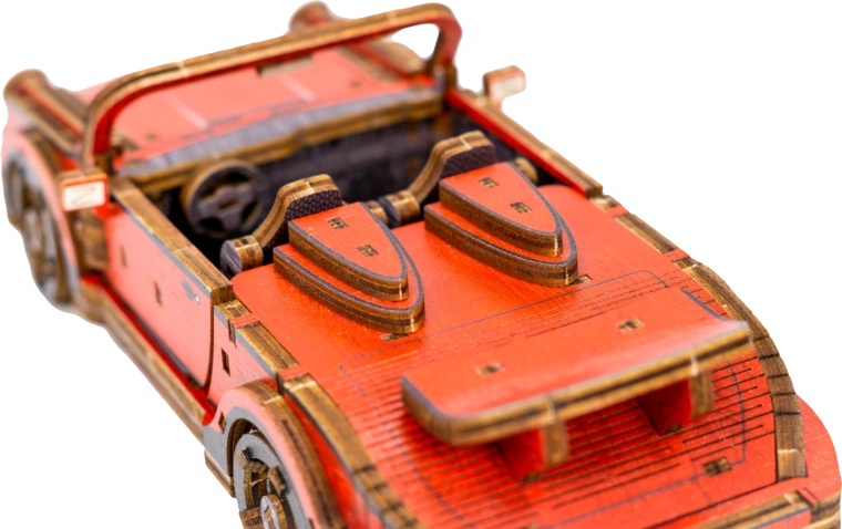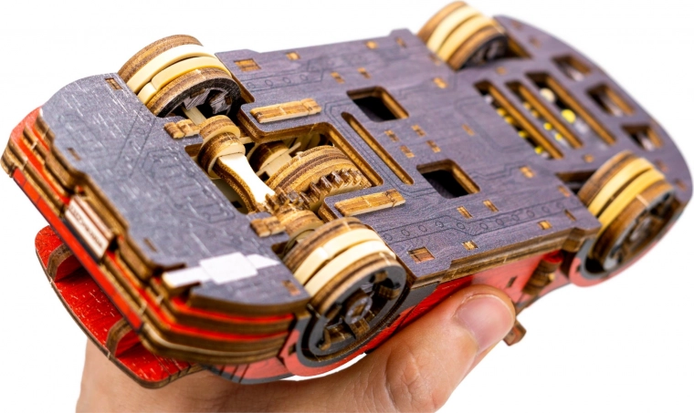 Un kit mecanic din lemn al celei mai uimitoare mașini sport te așteaptă! Datorită designului unic și detaliilor surprinzătoare ale acestui model, timpul tău liber va fi plin de distracție și emoții grozave. Poți folosi direcția roților din față. Mașina, cu mecanism pe bază de inerție, poate parcurge până la 1 metru. Caracteristicile mașinii sport: - motor antrenat cu curea elastică, - roți față direcționale, - elemente colorate expresive datorită imprimării UV de înaltă precizie, - cutia din lemn servește ca suport, - ediție de colecție. 3D puzzle WOODEN CITY Sport Car va fi cel mai bun cadou pentru orice pasionat de mașini sport. Dificultate: 3 din 5 (conform clasificării Wooden City) Timp orientativ de asamblare: 3 ore Scară: 1:22 Puzzle-urile 3D din lemn WOODEN CITY sunt modele mecanice funcționale, detaliate, care se asamblează fără lipici sau unelte. Sunt fabricate din materiale din lemn ecologice – placaj de mesteacăn de calitate. Cu puzzle-urile mecanice din lemn WOODEN CITY vei petrece ore întregi de distracție la asamblare și vei cunoaște transmisii, motoare cu elastic, roți dințate și alte componente de foarte aproape. model mecanic funcțional asamblare fără utilizarea adezivului sau a uneltelor execuție de calitate din material natural detalii elaborate AVERTISMENT: Pentru asamblare sunt necesare un cutter cu lame rupte, o foarfecă, hârtie abrazivă și o lumânare de ceară (nu sunt incluse). Pentru funcționare corectă și fără probleme, este necesară ceruirea axelor și a roților dințate. Dimensiunea puzzle-ului asamblat aprox. 19,7 x 8,9 x 5,8 cm