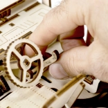 Fiecare piesă a modelului, care măsoară aproximativ 27,9 x 15,1 x 14,8 cm, este tăiată cu laser pentru o asamblare precisă și lină. La final, pregătiți ceară pentru asigurarea funcționării line a roților dințate și a axelor. Asamblarea trebuie completată cu un cuțit detașabil, foarfece, șmirghel și o lumânare (echipamentul nu este inclus în pachet).