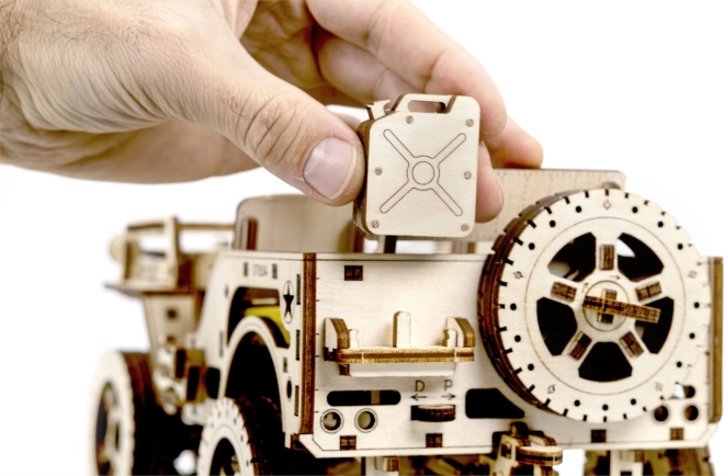 Modelul de jeep 4x4 din lemn de la WOODEN CITY este un cadou minunat pentru iubitorii de vehicule clasice și modele. Realizat din placaj de mesteacăn ecologic, acest model oferă: