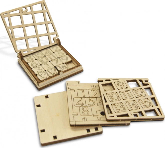 Jocul logic din lemn 15 este un puzzle glisant clasic ce oferă un mod distractiv de a dezvolta gândirea logică și abilitățile motorii. Această jucărie se asamblează ușor fără a necesita lipici sau unelte și, datorită designului său compact, este ideală pentru călătorii.