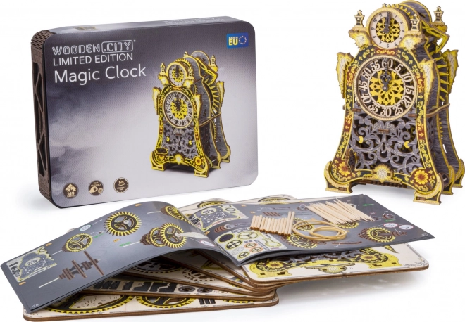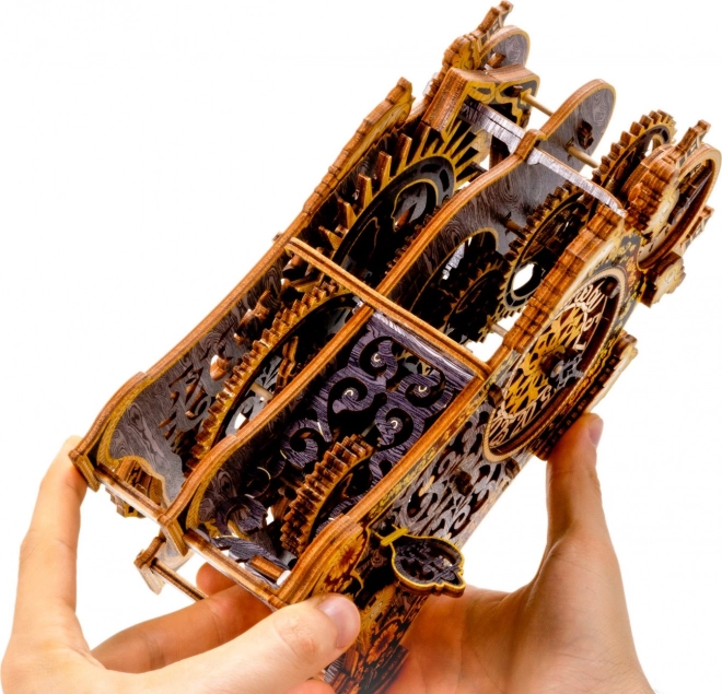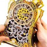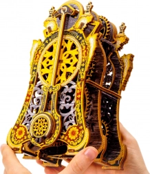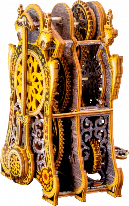 Descoperă magia și farmecul tehnic într-un singur obiect – puzzle 3D din lemn cu ceasuri magice, ediție limitată. Acest model mecanic funcțional, cu cadran dublu, roți dințate vizibile și pendul, măsoară cu adevărat timpul aproximativ 30 de minute la o singură armare. Datorită imprimării UV în culori intense, asamblării fără adeziv și cutiei din lemn folosite ca suport, devine o decorațiune unică și un cadou inspirat.