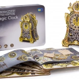 Ceasurile magice sunt poveste și știință într-un singur model. După asamblare, prind viață prin mișcarea roților dințate și mersul regulat al pendulului. Două cadrane – pentru ore și minute – îți permit să urmărești timpul și mecanica fascinantă. Ediția limitată, cu gravuri delicate și imprimare UV color, se evidențiază în interior și amintește de atmosfera basmelor clasice.