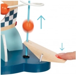 - Două bucle metalice pentru deplasarea mărgelelor, care dezvoltă coordonarea mână-ochi și precizia mișcărilor.
