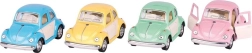 Datorită dimensiunilor compacte 10 × 5,5 × 5,5 cm, mașinuța este partenerul ideal de drum. Doar trage-o de câteva ori înapoi și Beetle-ul pornește înainte – o distracție simplă și îndrăgită, care nu se demodează.