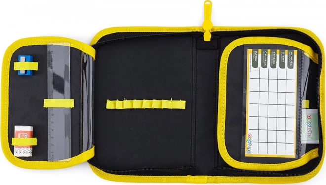 Penar cu un singur etaj cu posibilitatea de a fixa diverse rechizite școlare, echipat cu folie transparentă pentru planificatorul de ore.