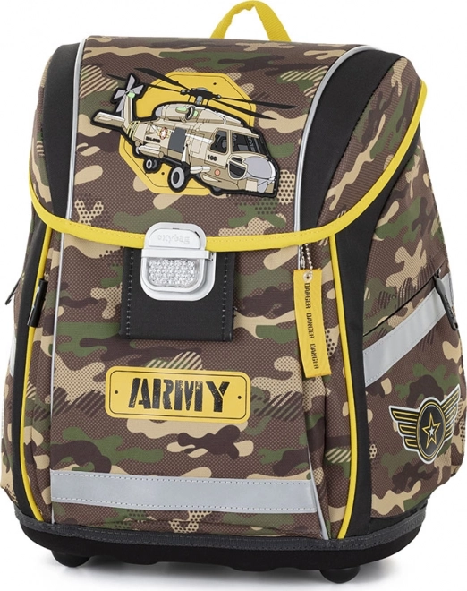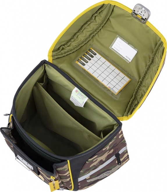 Săculeț rezistent cu stil de armată, ușor de închis. Potrivit pentru școală, sport și activități de timp liber.