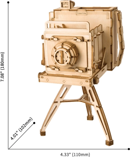 Puzzle-ul 3D din lemn Aparat foto istoric te va transporta în trecut, în timp ce asamblezi un model detaliat al unei camere vintage. Tăiate cu laser pentru precizie și fără a necesita lipici, devine o activitate relaxantă pentru oricine.