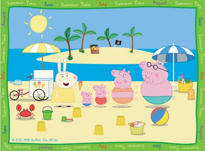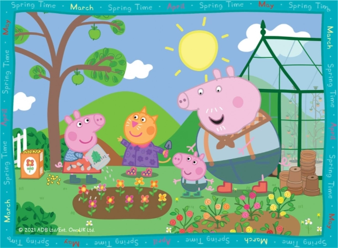 Învață să asamblezi pas cu pas alături de îndrăgitul personaj Purcelușa Peppa. Setul progresiv 4 în 1 oferă patru imagini cu dificultate crescătoare (12, 16, 20 și 24 de piese), astfel încât copiii își dezvoltă natural abilitățile și se distrează cu tema anotimpurilor.