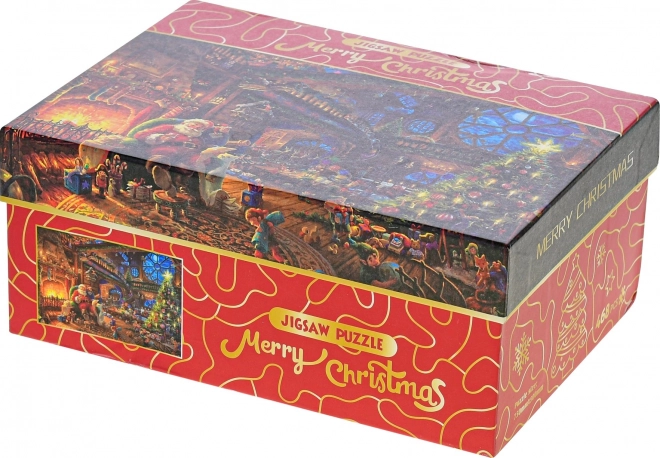 Puzzle-ul de Crăciun Merry Christmas – la Santa acasă aduce atmosfera magică a sărbătorilor direct pe masa dvs. Datorită formelor neobișnuite ale pieselor, asamblarea este plăcut de provocatoare și îi va încânta atât pe începători, cât și pe pasionații de puzzle. Imaginea finală, cu dimensiunea de aproximativ 75 × 50 cm, devine o decorațiune superbă.