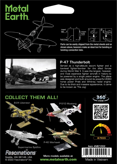 Set pentru realizarea unui model 3D metalic fascinant. Construcția puzzle-ului METAL EARTH necesită răbdare și îndemânare. Totuși, rezultatul muncii compensează pe deplin efortul depus. Reproducerile miniaturale sunt o decorațiune impresionantă și captivantă. Din foi pătrate de oțel, sub mâinile tale prind formă modele fascinante, lucrate în detaliu. Aspectul autentic al puzzle-urilor 3D METAL EARTH este obținut datorită gravării laser detaliate. Uneltele nu sunt incluse în pachet. PROCEDURĂ DE LUCRU: Scoateți piesele individuale din foile metalice; dacă este necesar, folosiți clești de tăiat mici (neincluși). Piesele se îmbină între ele prin încuietori formate dintr-un cârlig (lăbuță) și o gaură. Îndoiți cârligul cu ajutorul unor clești subțiri mici (neincluși) și îmbinați treptat toate încuietorile până când obțineți o piesă de măiestrie foarte realistă!