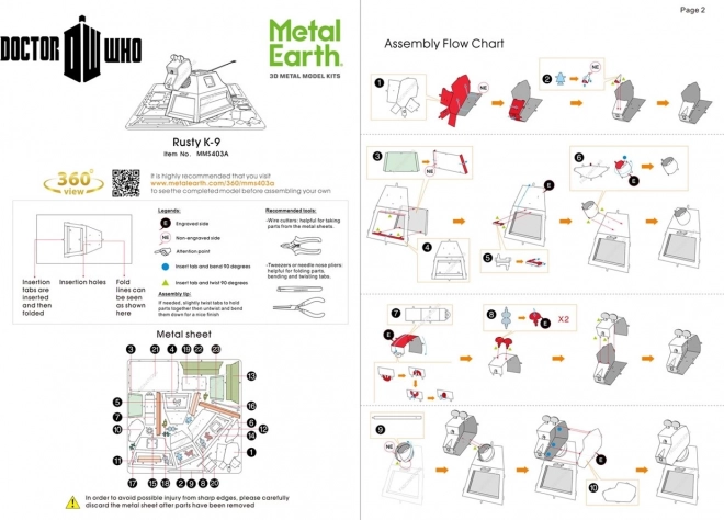 Set pentru realizarea unui model 3D metalic fascinant. Asamblarea puzzle-ului METAL EARTH necesită răbdare și îndemânare. Rezultatul muncii însă compensează pe deplin efortul depus. Reproducțiile miniaturale sunt o decorațiune impresionantă și captivantă. Din foițe pătrate de oțel vor prinde formă în mâinile tale modele detaliate și fascinante. Aspectul autentic al puzzle-ului 3D METAL EARTH este obținut datorită gravării laser detaliate. Uneltele nu sunt incluse în pachet. PROCEDURĂ DE LUCRU: Scoateți piesele individuale din foile metalice; dacă este necesar, folosiți clești de tăiat mici (neincluși). Piesele se îmbină între ele prin încuietori formate dintr-un cârlig (lăbuță) și o perforație. Îndoiți lăbuța cu ajutorul unei perechi de clești subțiri mici (neincluși) și îmbinați treptat toate încuietorile până rezultă o piesă de maestru foarte realistă!