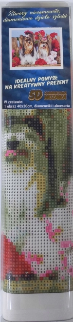 Pictura cu diamante este o activitate creativă grozavă, care ajută la relaxarea minții și, în același timp, la realizarea unei decorațiuni unice pentru casă. Motivul cățeilor în trandafiri îi va încânta pe iubitorii de animale și de detalii frumoase. Datorită legendei clare și stiloului de aplicare, vei lipi cu ușurință pietricelele colorate pe pânza pretipărită.