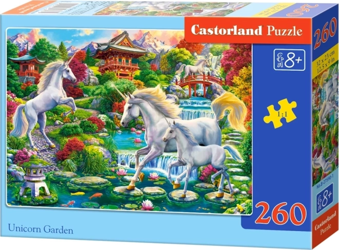 Puzzle colorate pentru copii cu motivul Unicorn Garden oferă distracție și învățare într-un singur produs. Sunt alcătuite din 260 de piese și, după asamblare, formează o imagine cu dimensiunea de 32 × 23 cm. Datorită execuției de calitate, culorilor vii și pieselor de dimensiune adecvată, sunt ideale pentru copii, ajutând la dezvoltarea motricității, concentrării și imaginației.