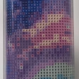 - Pânză cu imagine pretipărită, set de pietricele colorate, stilou de aplicare, tăviță, ceară