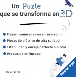 Pachetul conține: 108 piese numerotate de puzzle, 48 piese accesorii și un manual. Dimensiunea puzzle-ului asamblat este de aprox. 25,1 x 12,4 x 6,5 cm.