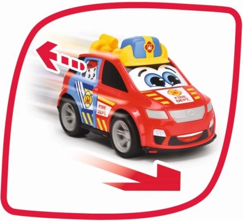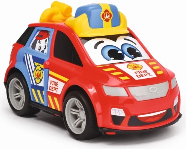 Mașina de pompieri roșie cu ochi expresivi și o față veselă este pregătită să intervină. Culorile vii și insignele de pompieri fac din această mașină un accesoriu minunat pentru orice joc.