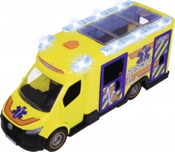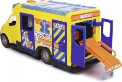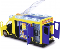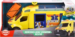 Această Mercedes-Benz Sprinter de la Dickie Toys aduce o experiență autentică de salvare cu funcții de lumină și sunet. Vehiculul are uși deschizătoare pentru șofer, pasager, laterale și spate și un acoperiș transparent, oferind acces la un interior detaliat.