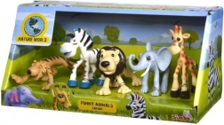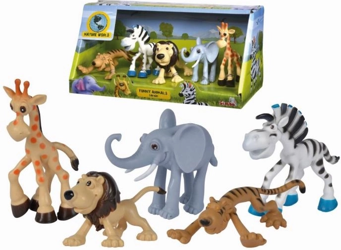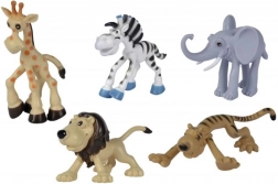 Set de 5 animăluțe de safari: tigru, zebră, leu, elefant și girafă. Dimensiunea animăluțelor: 9 - 12 cm.