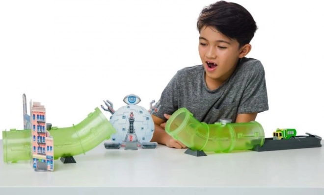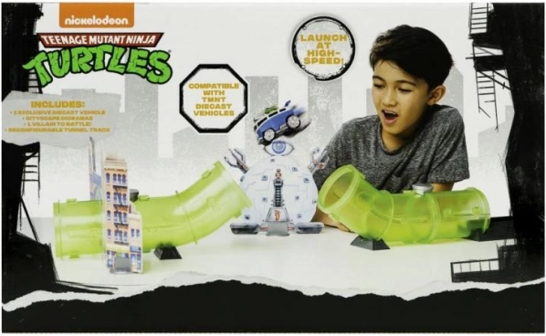 Intrați în lumea Țestoaselor Ninja cu acest set de joc minunat conceput, care oferă distracție captivantă. Pista este echipată cu secțiuni tunel și rampa de lansare, permițând copiilor să exploreze orașul și să prindă răufăcători. Pachetul include figurine care le permit copiilor să creeze propriile povești și scenarii.