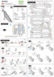 Asamblarea se face din plăcuțe de oțel (21 × 11 cm) prin sisteme de închidere inteligente – fără adeziv. Pur și simplu detașezi piesele, le introduci în orificiile pregătite și îndoi lăbuțele cu clești. Pachetul conține 3 plăcuțe mari și 1 plăcuță mică din oțel, plus instrucțiuni clare; sunt recomandate clești mici și un clește tăietor.