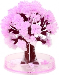 Copăcelul magic înfloritor aduce în casa dvs. o notă de primăvară în doar câteva ore. Silueta de hârtie a copacului absoarbe soluția după udare, iar pe crenguțe se formează cristale fine, pufoase, în nuanțe de roz – ca o sakura înflorită. Datorită bolului transparent, copăcelul se evidențiază pe birou, raft sau noptieră.
