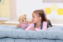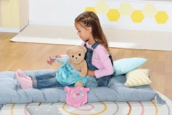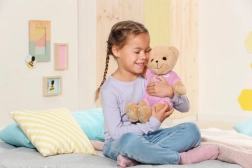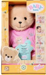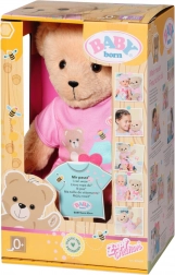 Ursulețul poartă o hăinuță roz stilată și este conceput astfel încât să i se potrivească majoritatea hăinuțelor pentru păpușile BABY BORN de 43 cm (cu excepția pantofiorilor). În pachet găsești și o cărticică a prieteniei cu o coală de autocolante – notează aventuri, nume și momente împreună.