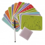 Datorită markerului special, care poate fi șters cu burețelul inclus, cardurile sunt reutilizabile. Învățarea poate avea loc fără stres, cu bucuria repetiției și a progresului.