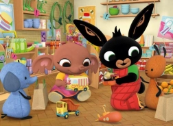 Copiii se vor bucura să asambleze imagini colorate cu personajele preferate din serialul animat Bing.
