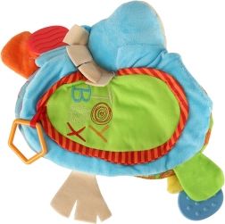 Mușcătoarele plasate pe picioarele eșafodajului aduc alinare pentru gingiile dureroase și texturile diverse stimulează simțurile. Cartea pliabilă poate ocupa copilul atât acasă, cât și în deplasare, fiind ușor de atașat la cărucior pentru a asigura distracție pe tot parcursul zilei.