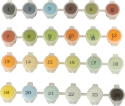 - Set complet cu toate accesoriile necesare: pânză montată pe ramă, trei pensule de dimensiuni diferite, și cutiuțe de vopsele perfect dozate.