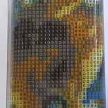 - Pânză cu imagine pretipărită și strat adeziv, stilou de aplicare, tăviță, ceară, set de pietricele colorate