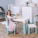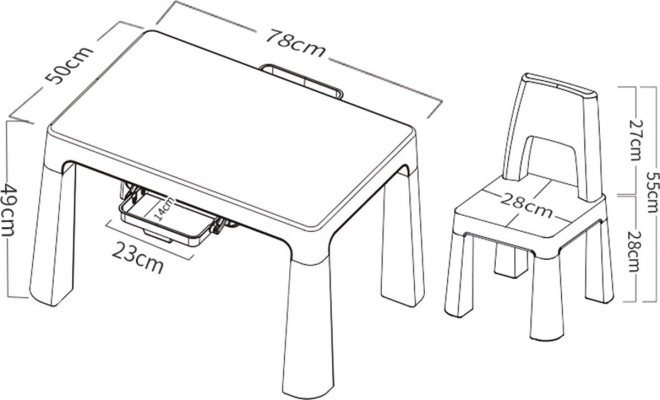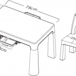 Măsuța din plastic cu scaune Neo oferă plastic rezistent și un aspect modern, care se potrivește oricărui interior pentru copii. Este echipată cu două sertărașe practice de 23 x 14 cm, unde copiii își pot pune mărunțișurile.