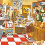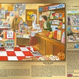 Asamblare confortabilă cu Puzzle Ravensburger Magazin la colțul străzii cu 100 de piese. Datorită pieselor de cinci centimetri, acest puzzle este ideal pentru manipulare confortabilă, iar imaginea completă măsoară 49 x 36 cm.