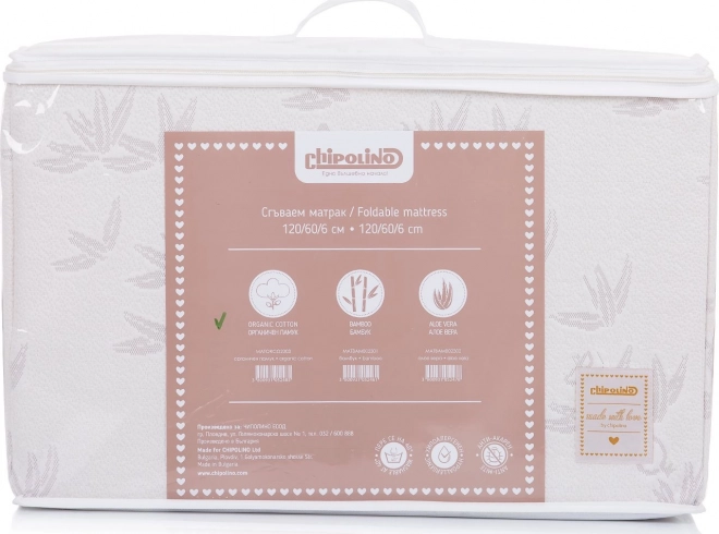 Salteaua pliabilă CHIPOLINO este potrivită pentru pătuțuri cu dimensiunile 120 x 60 cm. Bambușul are proprietatea unică de a menține temperatura corporală naturală – răcorește vara și încălzește iarna. Datorită lui, țesăturile sunt deosebit de moi și proaspete și sunt protejate împotriva bacteriilor și microorganismelor.