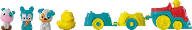 Acest set de tren colorat și distractiv transformă jocul copiilor în aventuri la fermă. Odată ce trenul trece, ferma prinde viață: brațele macaralei se ridică, moara începe să se rotească, iar animalele își asumă rolurile sonore caracteristice. Prin închiderea porții galbene, rățușca e29epâlpâie9d în jurul iazului, iar caruselul se învârte. O modalitate excelentă de a stimula coordonarea mână-ochi și de a încuraja imaginația copiilor.
