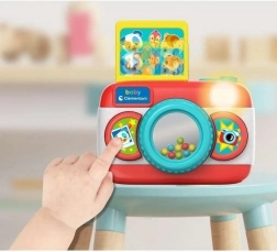 Acest aparat foto de plastic colorat pentru copii oferă mai mult decât distracție este o sursă de învățare. Conține butoane pentru redarea melodiilor și efectelor sonore, care se succed la fiecare apăsare. Efectele luminoase și elementele interactive stimulează dezvoltarea senzorială și motorica fină a copilului.