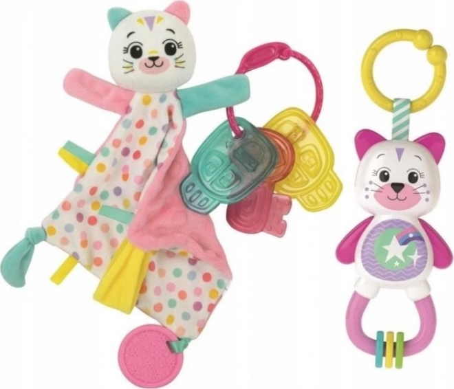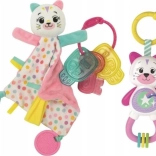 Un set cadou adorabil pentru cei mai mici, care include o păturică-doudou moale pentru somn, o jucărie zornăitoare colorată și o suzetă pentru gingii din silicon. Ideal ca prima jucărie – sprijină calmarea, dezvoltarea simțurilor și motricitatea, fiind realizat din materiale sigure și de calitate.