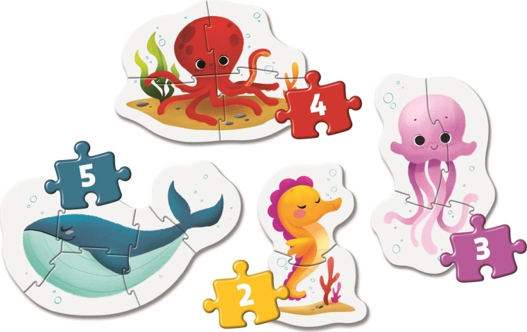 Descoperiți lumea fascinantă a vieții marine cu acest set de puzzle-uri Clementoni conceput pentru cei mici. Setul include patru puzzle-uri cu dificultate semnificativ diferită, asigurând distracție și dezvoltarea gândirii copilului dumneavoastră.
