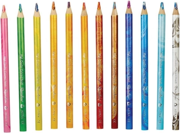 Creioanele din lemn ASTRA cu formă triunghiulară, mărime jumbo, sunt proiectate pentru o priză confortabilă și creativitate maximă. Miezul multicolor special creează la fiecare trasare linii variate, care își schimbă nuanța în mod lin, fără a fi nevoie să rotești creionul. Sunt excelente pentru desenarea apei, ierbii, cerului sau nisipului, unde ies în evidență tranzițiile naturale de culoare.