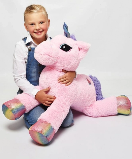 Faceți cunoștință cu unicornul nostru de pluș roz de 85 cm, realizat din pluș de calitate, moale și fin, care este un companion ideal pentru orice copil.