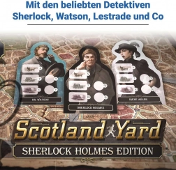 În jocul de societate palpitant Scotland Yard Sherlock Holmes, un jucător preia rolul faimosului criminal Moriarty, în timp ce ceilalți reprezintă echipa de detectivi condusă de Sherlock Holmes. Scopul tău este să-l prinzi pe Moriarty folosindu-ți abilitățile de deducție înainte ca acesta să scape din Londra.
