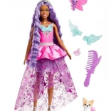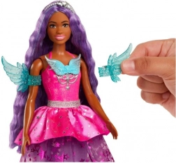 Păpușa Barbie Brooklyn strălucește în rochia de poveste, inspirată de magie și fantezie. Ea poartă o rochie cu fustă din tulle decorată cu stele și detalii de aripi pe corset, care subliniază aspectul ei magic. Păpușa este dotată cu păr mov de 17 cm și o varietate de accesorii, incluzând un pieptene, o bentiță strălucitoare și agrafe decorative.